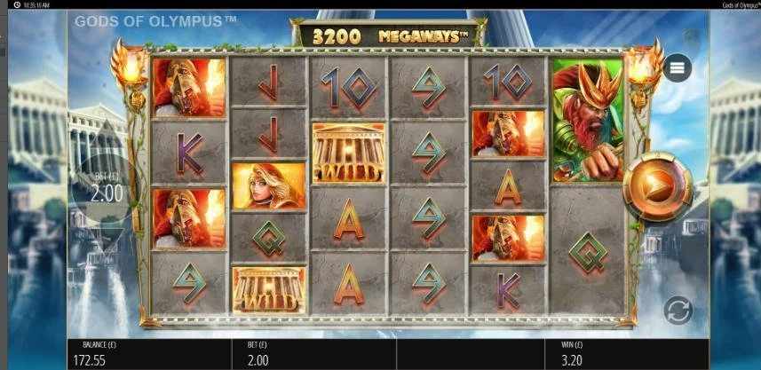 Gods of Olympus Megaways är en spelautomat som utvecklats av Blueprint Gaming, under licens av Big Time Gaming. Spelet släpptes i augusti 2019. Temat kretsar kring det historiska Grekland och dess mytologi. Detta är en högvolatil spelautomat med bonusspel och freespins.