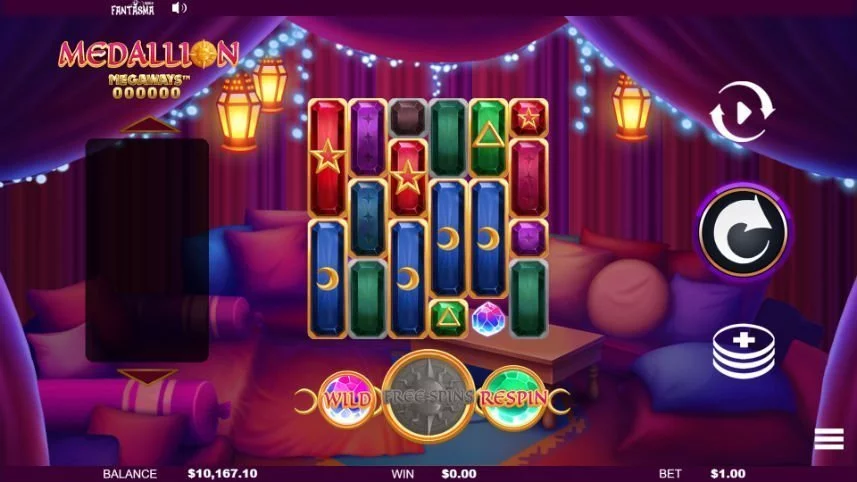 Vi brukar ibland klaga på designen på slots med Megaways men eftersom Medallion har ett helt unikt koncept med någon slags konstiga kristaller så ser det ändå väldigt bra ut. Det verkar som denna slot är främst designad för spel på mobila enheter men den går bra att spela även i datorn.