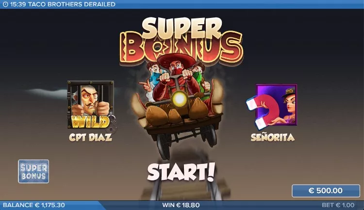 Då du får 3 bonussymboler att landa på hjulen så aktiveras bonusspelet i Taco Brothers Derailed. Bonussymbolerna stannar dessutom kvar på skärmen under respins vilket gör att det känns lättare att aktivera bonusspelet.