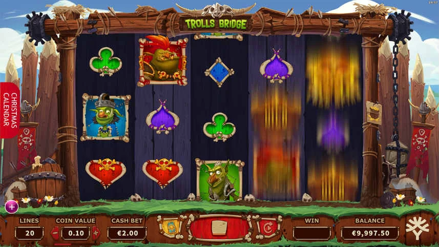 Innan vi sätter tänderna i alla saftiga funktioner kör vi en kortare genomgång av spelets uppbyggnad, RTP och insatsnivåer bland annat. Trolls Bridge har som många slots online snurrande hjul och antalet hjul i spelet är fem stycken med tre rader. Spelet har 20 stycken vinstlinjer och dessa är fasta. Du kan som minst satsa 2 kr och maxbeloppet du kan satsa är hela 2000 kr. Spelets RTP (spelets teoretiska återbetalning) ligger på 96,3%. Det har en medium volatilitet vilket innebär något frekventa småvinster och ibland vinster av lite högre värde.