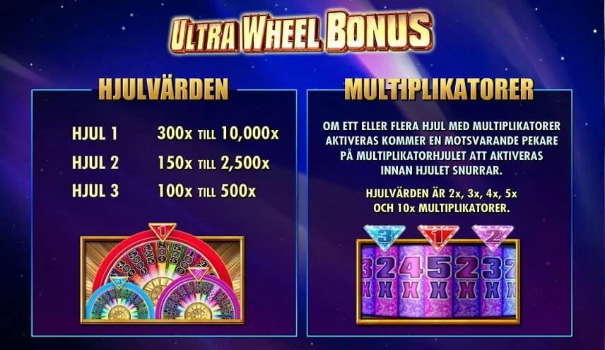 Skulle du dessutom aktivera multiplikatorerna kommer ett annat hjul att bestämma hur mycket allt ska multipliceras med utöver vad hjulen pekar på.
